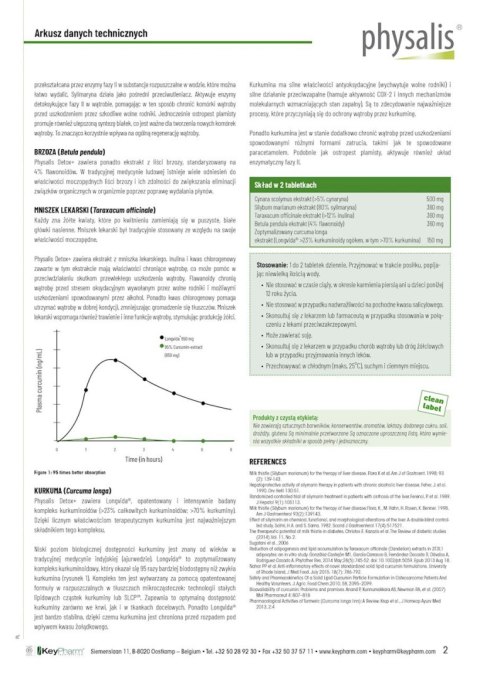 i ostropest plamisty (sylimaryna), które wspomagają detoksykacyjne i oczyszczające funkcje wątroby. Brzoza wspomaga funkcję eliminacyjną i filtrującą nerek. Mniszek lekarski wspiera ogólny stan zdrowia jelit dzięki zdolności do usuwania żółci i pozytywnemu wpływowi na czynność jelit. Wysokiej jakości ekstrakt z kurkumy pomaga zachować zdrową wątrobę i wspomaga trawienie tłuszczów.