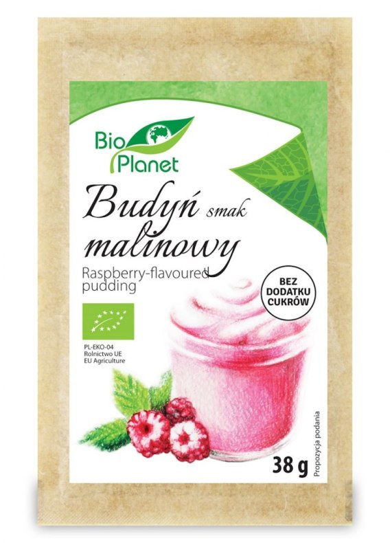 Budyń o smaku malinowym w proszku z dodatkiem liofilizowanych malin. Bez dodatku cukrów. Zawiera naturalnie występujące cukry.