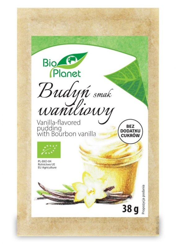 Budyń o smaku waniliowym w proszku z dodatkiem wanilii Bourbon. Bez dodatku cukrów. Zawiera naturalnie występujące cukry.