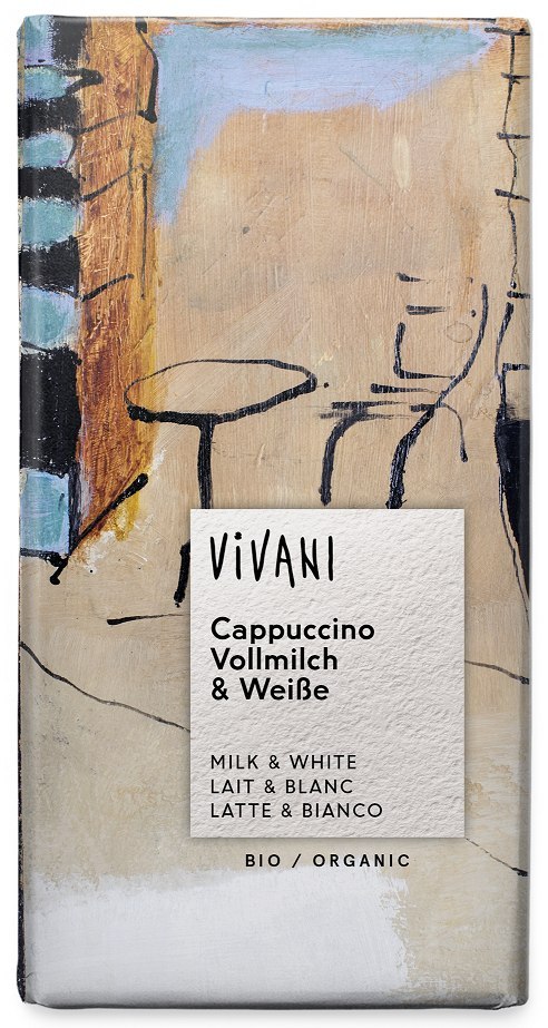 cukier trzcinowy nierafinowany*, tłuszcz kakaowy*, MLEKO pełne w proszku*, miazga kakaowa*, ŚMIETANA w proszku* (zawiera MLEKO), kawa* (2,5 %), odtłuszczone MLEKO w proszku*, SERWATKA w proszku* (zawiera MLEKO), ekstrakt z wanilii Bourbon*. (*certyfikowany składnik ekologiczny). Masa kakaowa minimum 40 %.