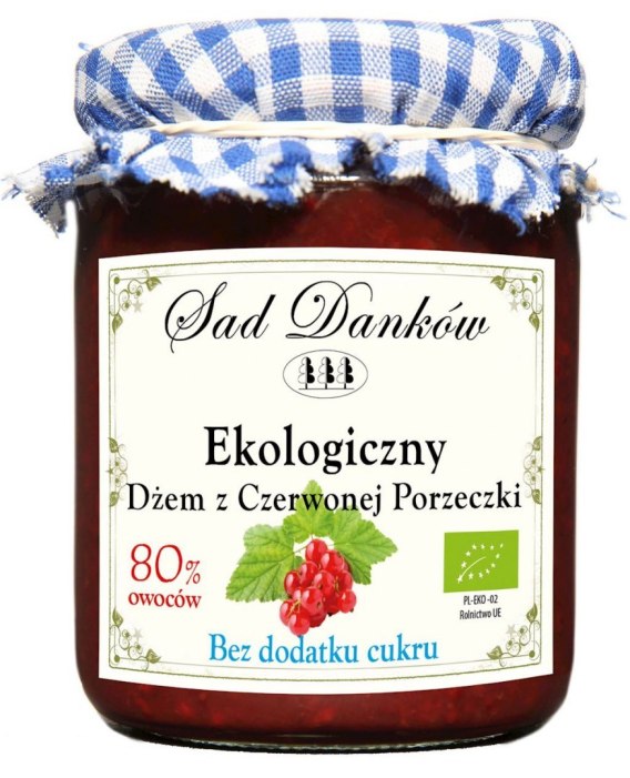100 g produktu sporządzono z 80 g owoców. Produkt pasteryzowany otrzymany przez odszypułkowanie owoców czerwonej porzeczki z dodatkiem koncentratu jabłkowego w celu otrzymania odpowiedniego poziomu pH.