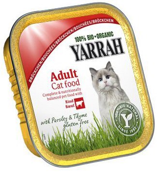 Karma pełnoporcjowa dla kota. Kawałki kurczaka i wołowiny z suszonym tymiankiem, natką pietruszki i lubczykiem. Bez zbóż.