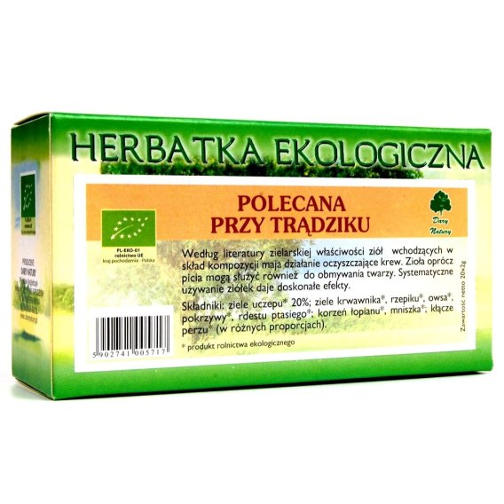 HERBATKA POLECANA PRZY TRĄDZIKU BIO (25 x 2 g) 50 g - DARY NATURY