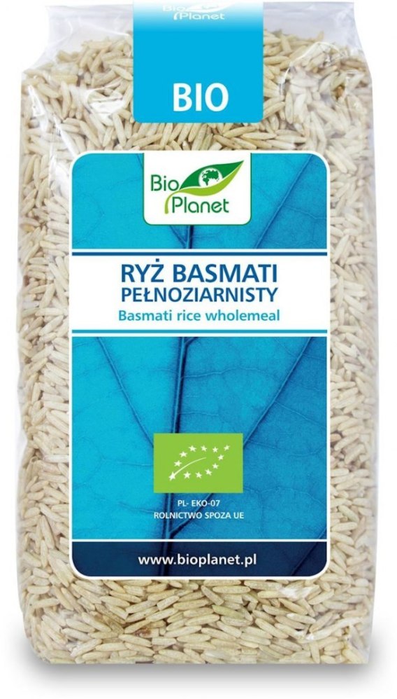 Ekologiczny ryż basmati pełnoziarnisty charakteryzuje się subtelnym orzechowym smakiem i niepowtarzalnym aromatem. Stanowi najszlachetniejszą odmianę ryżu na świecie. Doskonały jako dodatek do mięs, sałatek, dań egzotycznych i deserów. Ryż basmati pełnoziarnisty zachowuje wszystkie cenne składniki znajdujące się w łusce, dzięki czemu jest bardziej wartościowy niż ziarno obłuszczone. Sposób przygotowania: uprzednio wypłukany ryż gotować w proporcji 1:2 (1 porcja ryżu na 2 porcje wody) na małym ogniu ok. 35 minut.