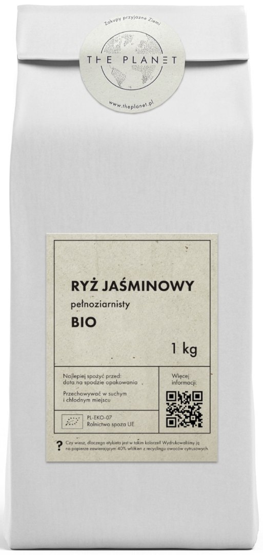 ekologiczny ryż jaśminowy pełnoziarnisty 100 %.
